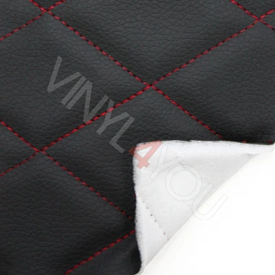 Экокожа стеганая Ромб Черная с Красной строчкой